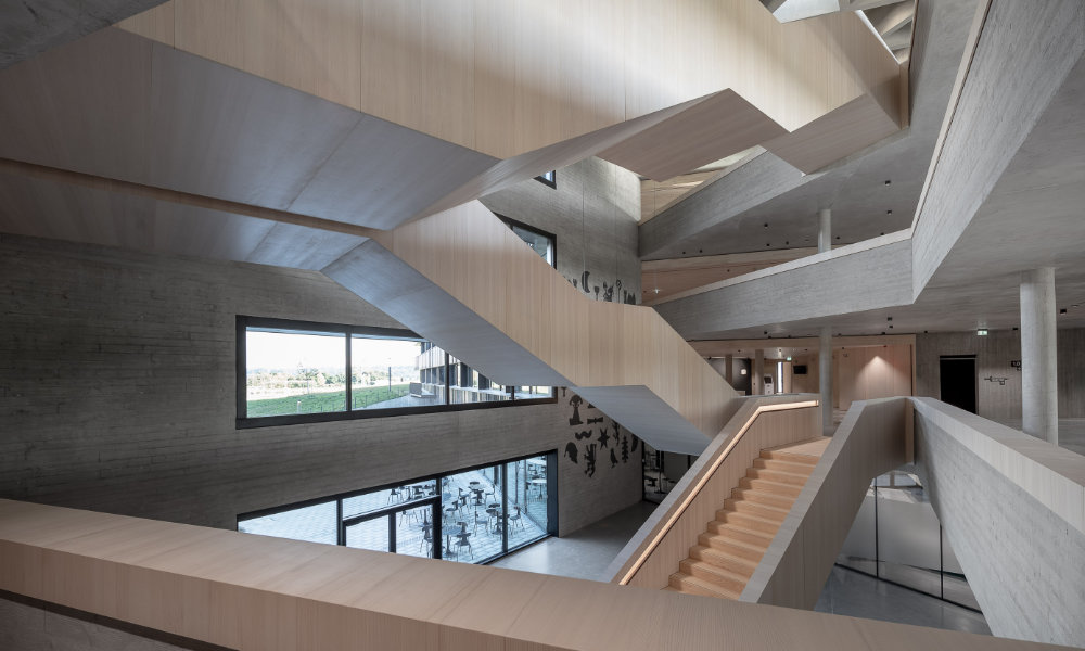 In rund dreieinhalb Jahren Planungs- und Bauzeit ist in Essenbach ein lichtdurchflutetes, in die Landschaft modelliertes Gebäude entstanden, das aus der Umgebung herauszuwachsen scheint und nie ganz zu sehen ist.