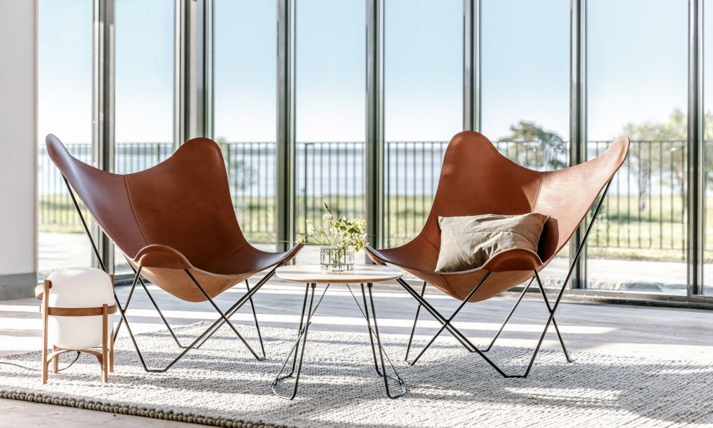 Verblüffend angesichts der Tatsache, dass der Stuhl mehr aus Nichts als aus zu viel besteht. Ob Sie ihn draußen oder drinnen nutzen möchten, ob in Leder oder Stoff, mit Fell oder ohne, Nackenkissen und Fußhocker bleibt Ihnen überlassen.
