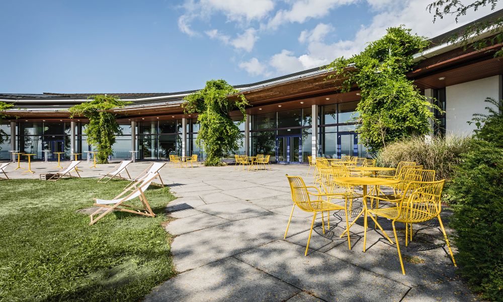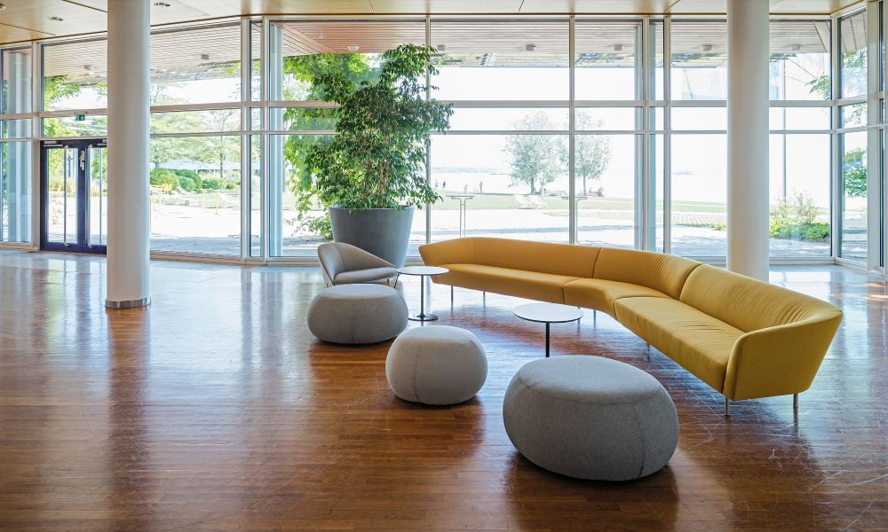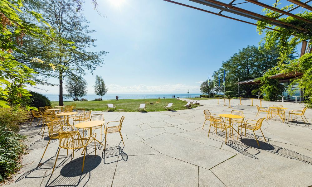 Das GZH ist eine „der“ Veranstaltungsinstitutionen am Friedrichshafener Seeufer. Das markante Gebäude, das als einer der wenigen Bauten aus den 80er Jahren unter Denkmalschutz steht, verlangt durch seine intensive Nutzung ab und an nach sanften Schönheitskuren. So sollte die Möblierung der Lounge und des Außenbereichs erneuert werden. Elegant & markant sollten die Möbel sein und eine Referenz an die außergewöhnliche Architektur des Hauses sein.