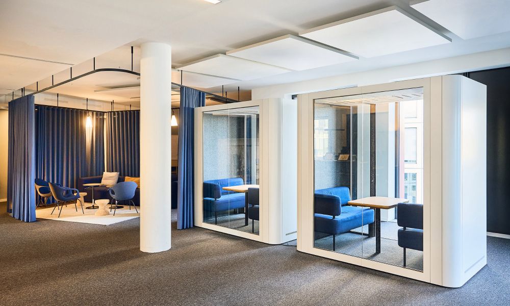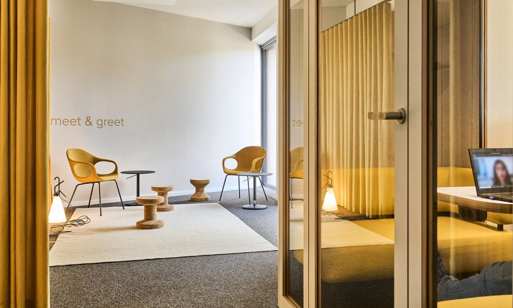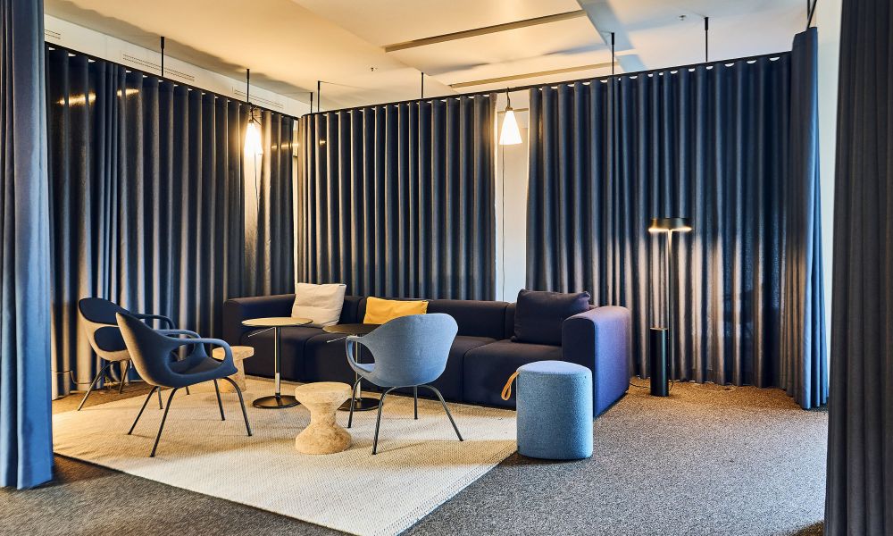 Die Grundlage des Projekts bildete ein Strategiepapier des Auftraggebers, das Wünsche und Ziele für eine Neugestaltung der Fläche formulierte und anhand dessen ein Gesamtkonzept für die Möblierung entwickelt wurde. Nach einer Testphase mit Staging-Möbeln, einem temporären Leitsystem und Farbkonzept sind nun Räume entstanden, die das sprichwörtliche Lagerfeuerfeeling ins echte Leben übersetzt haben. Ob me-work-areas, we-work, collaboration-areas, dem campfire oder den Zonen für den völligen Rückzug von der Arbeitsumgebung, die Fläche bietet für jeden Arbeitsmodus das richtige Umfeld.