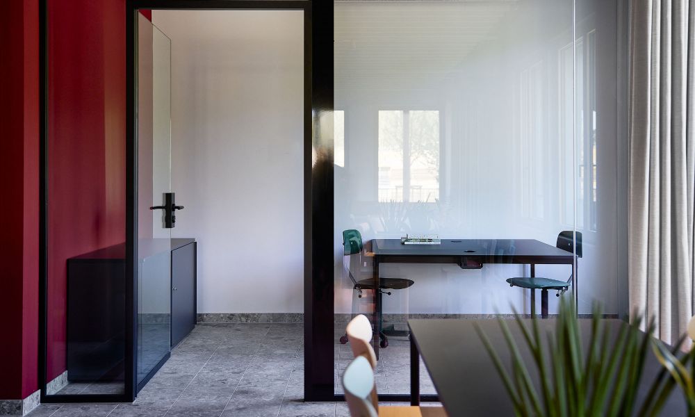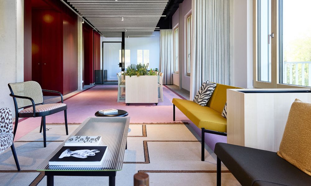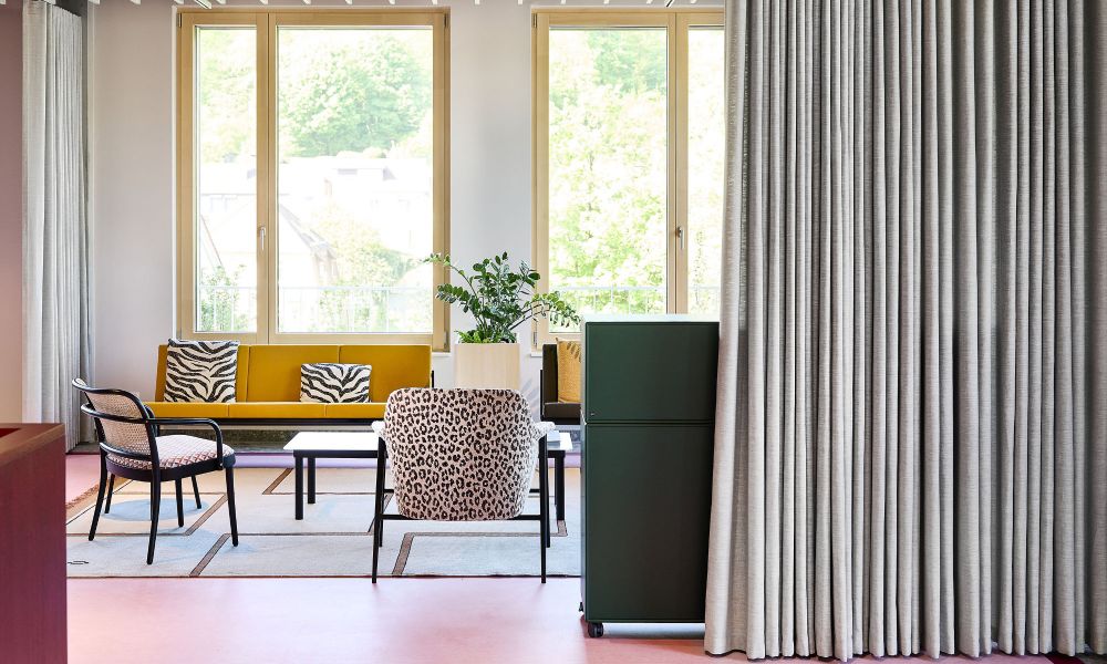Um mit der Quartierszentrale auch räumlich einen attraktiven Anlaufpunkt anzubieten, wurde das Büro mit 2 Arbeitsplätzen in ein Raumkonstrukt eingebunden, das den Bewohnern das Verweilen leicht macht: