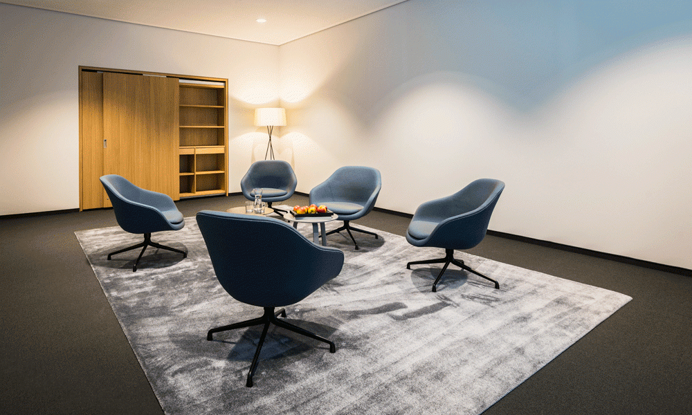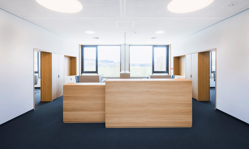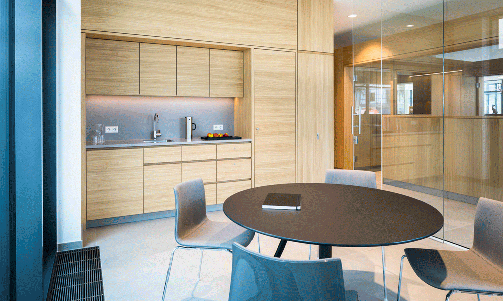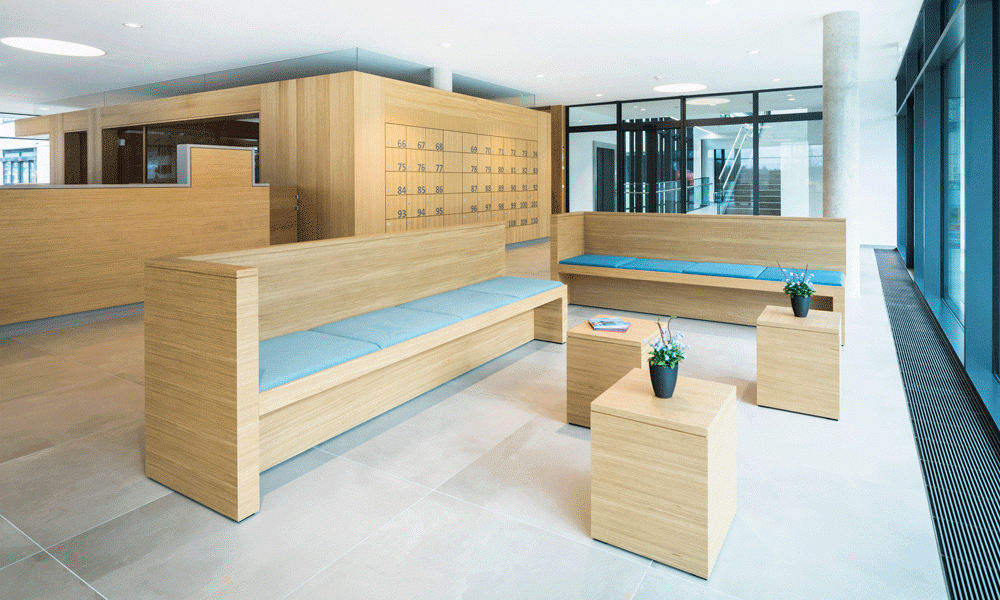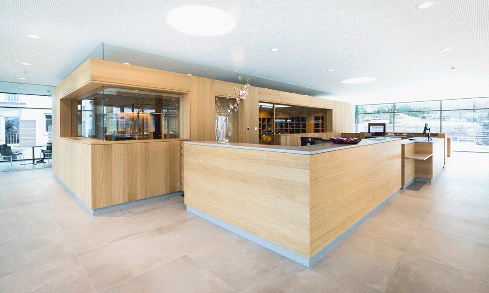 Gemeinsam mit der Bauherrschaft haben wir ein ganzheitliches Gestaltungkonzept für Empfang und Poststelle im Erdgeschoss sowie den Vorstandsbereich im Obergeschoss entwickelt und realisiert.